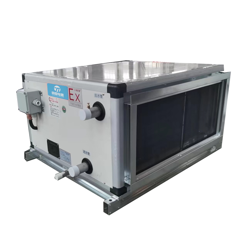 水冷型吊頂式防爆空調(diào)機組 吊頂式空氣處理機組適用于阻力大于100的空調(diào)系統(tǒng),是一種集中式空氣處理系統(tǒng),它起源于設(shè)備集中設(shè)置,